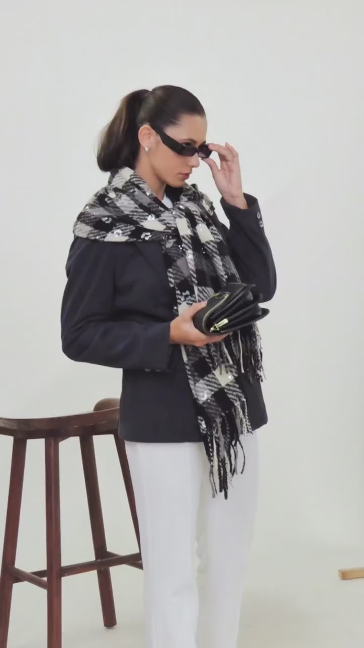 Black And White Check Stole With Foil Print