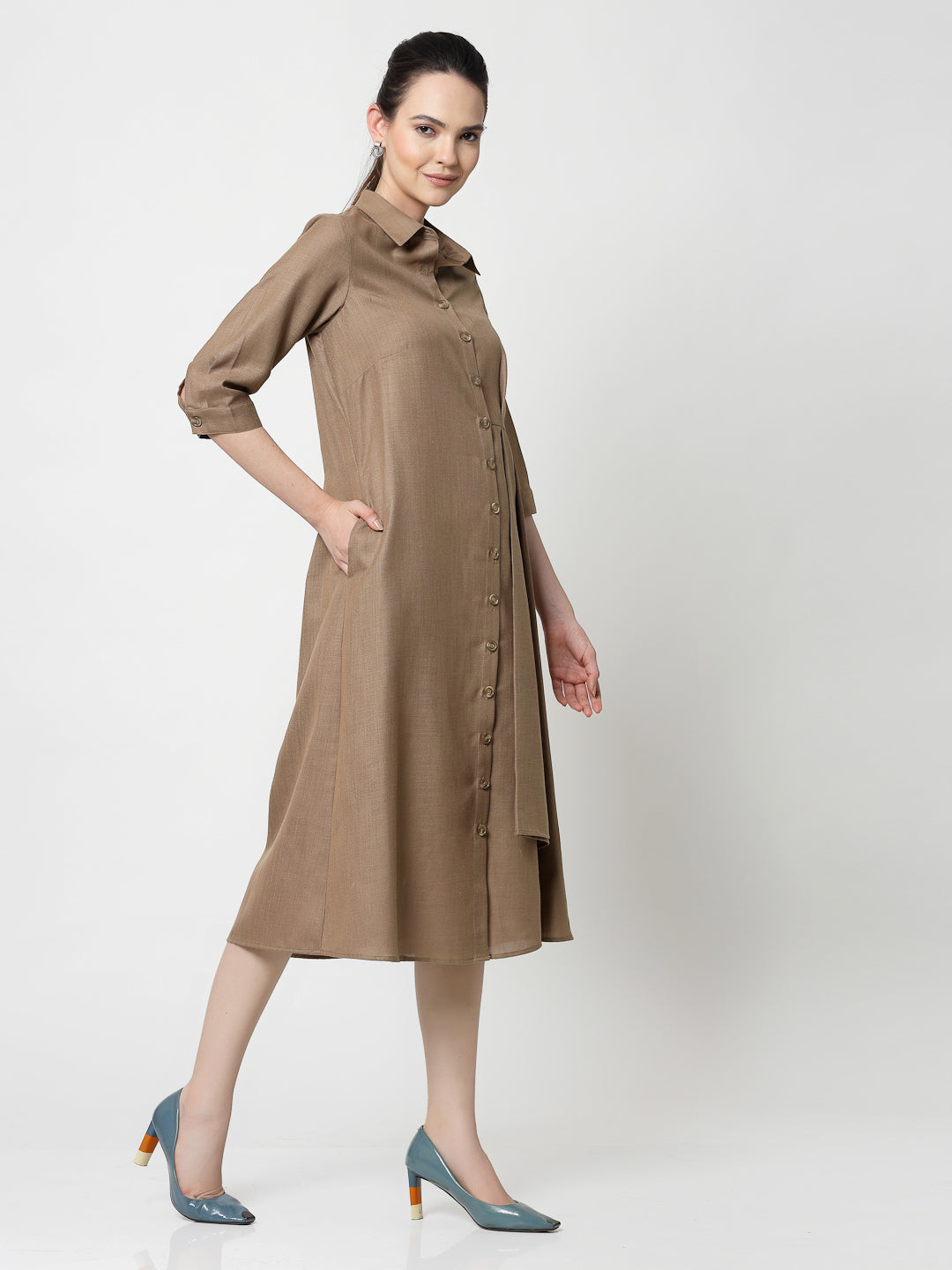 Gaun Panjang Berlipat Kapas Beige Gelap