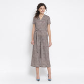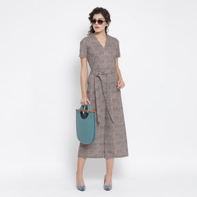 Keep your office style more relaxed yet presentable at the same time, with this brown checked jumpsuit from the House of Office and You. It will instantly highlight your spectacular fashion sense, and also will keep you at great ease and comfort. Walk with great zeal, passion, and confidence by teaming with a pair of heels.