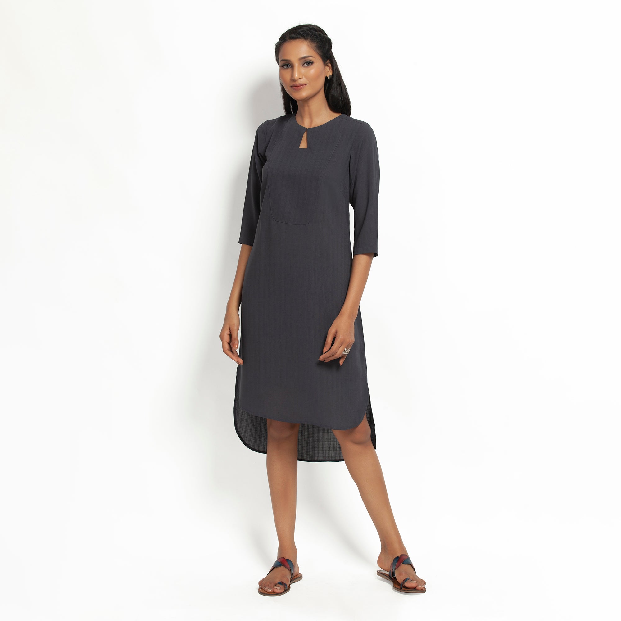 From that round neck to the asymmetrical silhouette, this dark grey tunic top from Office and You, is the season's must-have silhouette. Detailed with an eye hook, this comfortable pick will go well with form-fitting trousers for an effortless look.