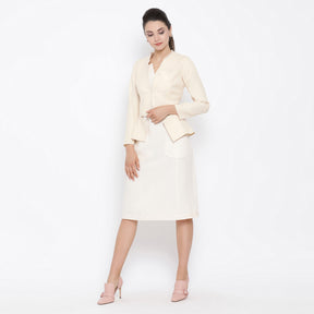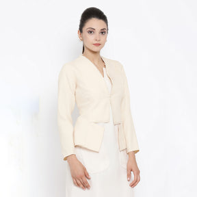 Your day trips to meetings are made perfect with this gorgeous white jacket by Office and You. Featuring a lovely rose broach on the left shoulder, the full-sleeve jacket looks amazing in its fringe design, which is perfect for any white formal attire.