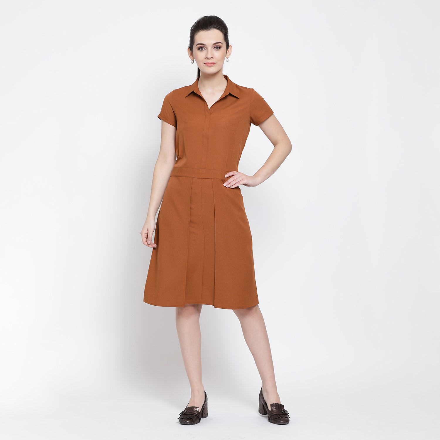 Balance the flair between professionalism and style with this Rust dress with flap at the waist by Office & you. The blended crepe fabric offers a gorgeous fall that positively transforms your body language.